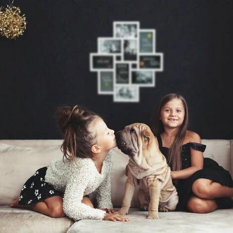 Riempite la cornice portafoto da parete individualmente girando i gancetti e rimuovendo il pannello sul retro. Così potete cambiare velocemente le fotografie. Mediante i ganci posteriori, la cornice multipla può essere appesa sia in verticale che in orizzontale.