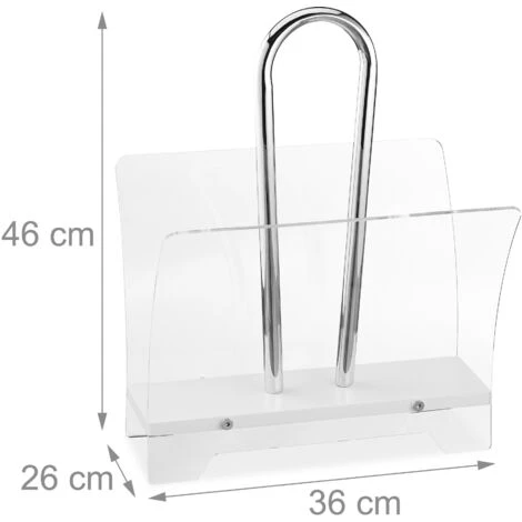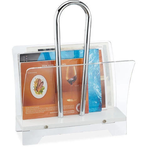 Grazie a questo raffinato portariviste i vostri giornali, periodici e settimanali saranno sempre ordinati e in bella vista. Il design trasparente del portagiornali permette di dare un’occhiata all’interno per controllarne il contenuto. Il mix tra metallo argentato e MDF bianco dona al portariviste un aspetto moderno che lo rende una vera attrazione per il salotto. Potrete utilizzarlo anche nelle sale d’attesa di studi medici e non solo per intrattenere i pazienti con letture interessanti.