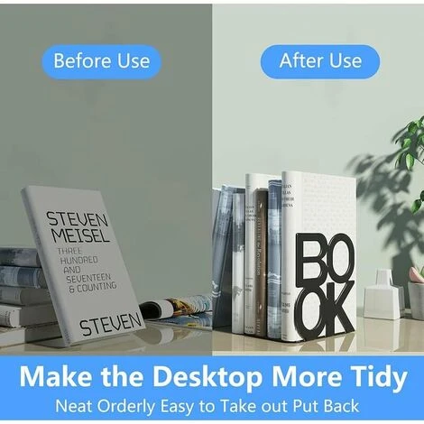 Antiscivolo e antigraffio – Il non -il fondo antiscivolo fornisce un attrito sufficiente per evitare scivolamenti e ha una stabilità sufficiente. I fermalibri in metallo reggono libri pesanti senza graffiare i mobili.