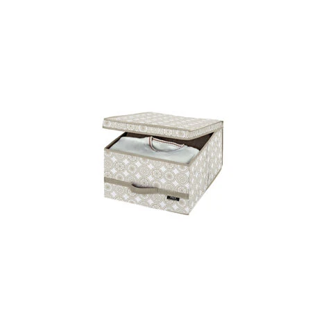 Con questa scatola di Domopak Living potrai organizzare al meglio i tuoi spazi e riporre ordinatamente vestiti e accessori, proteggendoli anche da umidità , tarme e polvere. Facile da montare e dotata di pratiche maniglie in tessuto, è resistente e robusta, ideale per mantenere in ordine il tuo armadio, senza rinunciare all’estetica, e ottimizzare gli spazi. Dimensioni: 38x24x50 cm.