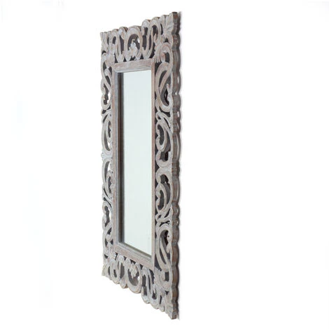 Specchio da parete dall’elegante cornice i cui fregi formano un raffinato disegno, donando allo specchio Kyara un design ricercato e chic. Perfetto per arredare il living o il soggiorno, ma anche ideale per un ingresso o la stanza da letto, grazie alle sue dimensioni.