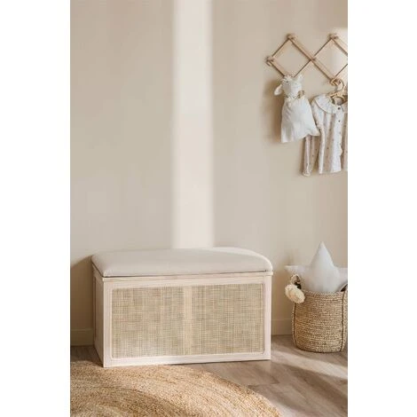 Da SKLUM scommettiamo sulla Cassapanca con Cuscino in Rattan e Legno Reyna, un affascinante baule che non passerà inosservato. Puoi posizionarlo in un soggiorno, in un ingresso o nella tua camera da letto per poter riporre oggetti e averli molto più organizzati e a portata di mano quando ne hai bisogno. Ciò che lo rende ancora più originale è il suo morbido e confortevole cuscino che si trova nella parte superiore dove puoi, ad esempio, sederti per cambiarti le scarpe quando ne hai bisogno. Realizzato in legno di pino, ha un frontale in rattan, materiale che gli conferisce eleganza e raffinatezza. Per una corretta manutenzione, si consiglia di pulirlo con un panno umido ed evitare l’uso di prodotti chimici. Dimensioni: 46 cm x 81 cm x 41 cm IMPORTANTE: Il servizio standard porta a porta non include la consegna e il ritiro della merce a casa del cliente, che è responsabilità del cliente. È possibile che la persona che effettua la consegna assista volontariamente alla consegna della merce (questo è completamente volontario per la persona che effettua la consegna e la società di trasporto e non è responsabilità di Sklum).Anche il montaggio non è incluso.