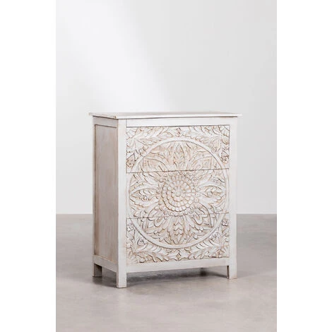In SKLUM ci impegniamo per la cassettiera in legno Rosan il mobile perfetto per completare la decorazione della tua casa. Realizzato in legno di mango che gli conferisce robustezza e compattezza , presenta graziosi elementi ornamentali intagliati a mano che lo rendono così unico ed originale . Inoltre dispone di tre ampi cassetti che ti aiuteranno a tenere tutto in ordine e molto più organizzato . Grazie alla sua lavorazione a mano, in ogni prodotto possono essere visti segni e irregolarità unici.Si consiglia di pulirlo con un panno umido, evitando l’uso di prodotti chimici. Dimensioni: 105,5 cm x 86 cm x 45 cm IMPORTANTE: Il servizio standard porta a porta non include la consegna e il ritiro della merce a casa del cliente, che è responsabilità del cliente. È possibile che la persona che effettua la consegna assista volontariamente alla consegna della merce (questo è completamente volontario per la persona che effettua la consegna e la società di trasporto e non è responsabilità di Sklum).Anche il montaggio non è incluso.
