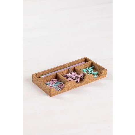L’ Organizer da scrivania Skriv è il complemento perfetto, per scrivania o cassetto, vi aiuterà a mantenere la vostra area di lavoro pulita e ordinata. Ha un design moderno e funzionale, con quattro scomparti spaziosi per organizzare il vostro materiale di lavoro. Il suo stile naturale è dovuto alla sua fabbricazione in sughero leggero e resistente, organizzazione e stile vanno di pari passo con Skriv! Per una corretta manutenzione si consiglia la pulizia a secco della zona macchiata, poiché il sughero non è un materiale impermeabile e può deteriorarsi quando si bagna. Dimensioni: 2,7 cm x 21,2 cm x 11,4 cm IMPORTANTE: Il servizio standard porta a porta non include la consegna e il ritiro della merce a casa del cliente, che è responsabilità del cliente. È possibile che la persona che effettua la consegna assista volontariamente alla consegna della merce (questo è completamente volontario per la persona che effettua la consegna e la società di trasporto e non è responsabilità di Sklum).Anche il montaggio non è incluso.