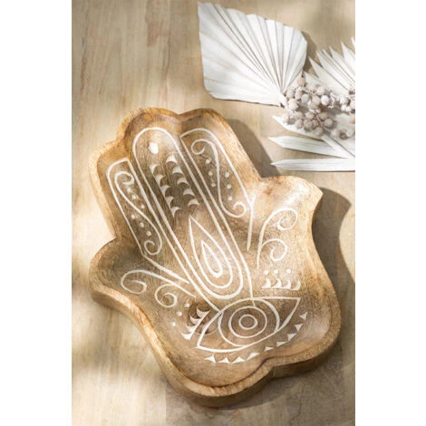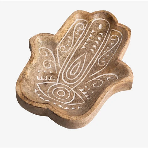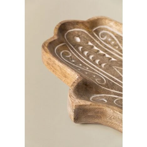 Sorprendi i tuoi ospiti con la decorazione della tua sala con la tasca vuota in legno di mango goura . Si distingue per la sua lavorazione in legno di mango , che lo rende un accessorio molto resistente , e per la sua forma della Mano di Fatima o Hamsa , simbolo noto per proteggere dal malocchio e dalla sfortuna. Mantieni l’ordine senza perdere lo stile e trova un posto dove lasciare tutte le tue cose quando arrivi a casa. Grazie alla sua lavorazione artigianale, ogni pezzo è unico. I prodotti possono presentare marchi differenti, e le loro irregolarità , così come le misure e/o le finiture possono subire variazioni rispetto all’immagine del modello che presentano. Per una corretta manutenzione si consiglia di pulirlo con una pelle di camoscio, evitando l’uso di prodotti chimici. Dimensioni: ∼30 cm x ∼23 cm x ∼2 cm IMPORTANTE: Il servizio standard porta a porta non include la consegna e il ritiro della merce a casa del cliente, che è responsabilità del cliente. È possibile che la persona che effettua la consegna assista volontariamente alla consegna della merce (questo è completamente volontario per la persona che effettua la consegna e la società di trasporto e non è responsabilità di Sklum).Anche il montaggio non è incluso.
