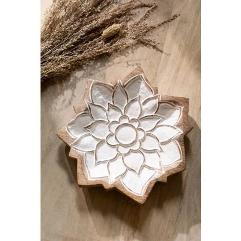 Il Portaoggetti in legno di mango Kolding è un accessorio decorativo oltre che funzionale , ideale per lasciare le chiavi nell’ingresso. Kolding è scolpito nel legno di mango e la sua forma originale ci ricorda un bellissimo fiore di loto, senza dubbio riempirà il tuo angolo preferito di aria naturale e fresca . Crea ambienti esotici e magici con Kolding! Grazie alla sua lavorazione artigianale, ogni pezzo è unico. I prodotti possono presentare marchi differenti, e le loro irregolarità , così come le misure e/o le finiture possono subire variazioni rispetto all’immagine del modello che presentano. Per una corretta manutenzione si consiglia di pulirlo con un panno umido, evitando l’uso di prodotti chimici. Dimensioni: ∼3,7 cm x x IMPORTANTE: Il servizio standard porta a porta non include la consegna e il ritiro della merce a casa del cliente, che è responsabilità del cliente. È possibile che la persona che effettua la consegna assista volontariamente alla consegna della merce (questo è completamente volontario per la persona che effettua la consegna e la società di trasporto e non è responsabilità di Sklum).Anche il montaggio non è incluso.