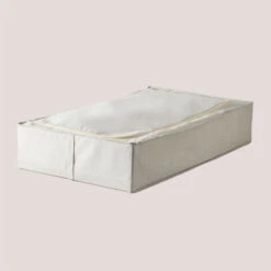 La Scatola portaoggetti Nadim è l’ideale per mantenere l’ordine nella tua stanza, essendo un complemento perfetto per organizzare i tuoi vestiti o accessori preferiti, permettendoti di risparmiare spazio e proteggendoli in ogni momento. Realizzata in cotone, poliestere e tessuto non tessuto al 50%, con un design elegante e naturale e una chiusura con cerniera che fornirà isolamento da polvere e umidità . Combinalo con la nostra vasta gamma di organizzatori creando un’atmosfera accogliente. Si consiglia il lavaggio a mano a una temperatura non superiore a 40ºC. Non usare la candeggina. Non stirare o asciugare in asciugatrice. Dimensioni: 19 cm x 55 cm – 93 cm x 45 cm – 55 cm IMPORTANTE: Il servizio standard porta a porta non include la consegna e il ritiro della merce a casa del cliente, che è responsabilità del cliente. È possibile che la persona che effettua la consegna assista volontariamente alla consegna della merce (questo è completamente volontario per la persona che effettua la consegna e la società di trasporto e non è responsabilità di Sklum).Anche il montaggio non è incluso.