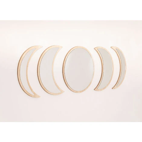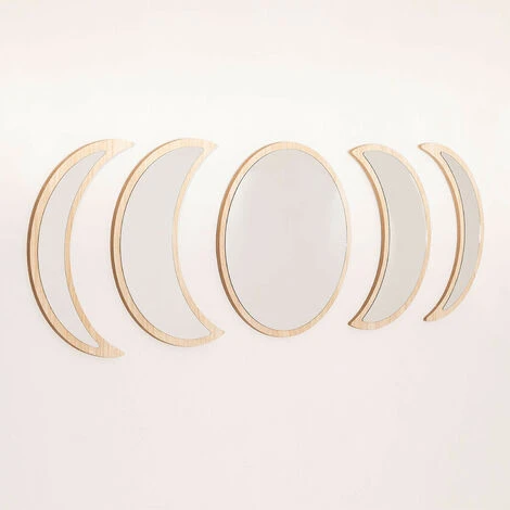 I nostri specchi da parete in legno a 5 pezzi Estel seducono tanto quanto ciò che rappresentano, le fasi lunari. Ogni pezzo è uno dei cambiamenti della luna, che attraversa ciascuna delle sue fasi. La cornice di ogni specchio è realizzata in legno di pino non trattato con finitura naturale, e grazie alle sue dimensioni puoi posizionarlo in qualsiasi angolo della tua casa, sia in verticale che in orizzontale. La luna nuova, la luna crescente, la luna piena e l’ultimo quarto decoreranno le pareti del vostro ingresso, soggiorno o camera da letto e creeranno un’atmosfera molto naturale e delicata che si adatterà perfettamente a stili decorativi come naturale, boho o mediterraneo. Si consiglia di pulirlo con un panno umido, evitando l’uso di prodotti chimici. Non sono incluse le viti per l’ancoraggio o il fissaggio al muro. Dimensioni: 40 cm x 9 cm – 40 cm x 1 cm IMPORTANTE: Il servizio standard porta a porta non include la consegna e il ritiro della merce a casa del cliente, che è responsabilità del cliente. È possibile che la persona che effettua la consegna assista volontariamente alla consegna della merce (questo è completamente volontario per la persona che effettua la consegna e la società di trasporto e non è responsabilità di Sklum).Anche il montaggio non è incluso.