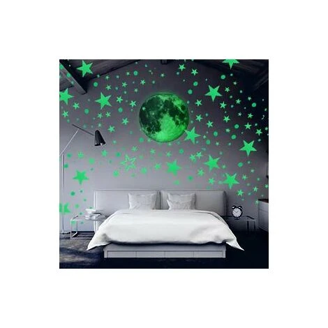 - [CARATTERISTICHE SUPERIORI E AVANZATE] – Soluzioni semplici Le stelle e la luna non solo brillano più a lungo e più luminose, ma hanno anche le migliori proprietà adesive in modo che la tua esperienza di osservazione delle stelle duri a lungo. Il colore delle stelle si fonde con il muro bianco durante il giorno e si anima di notte per creare un bagliore mozzafiato. Inoltre, sono facili da rimuovere e non danneggiano le pareti.