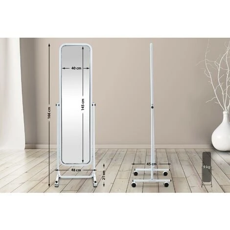 l’elegante specchio a figura intera è l’ideale per chi vuole avere un complemento d’arredo pratico e che possa arredare con stile la vostra camera da letto, salone o stanza del guardaroba. Le quattro pratiche rotelle incluse nella spedizione rendono la specchiera chic molto facile da spostare e in tutta sicurezza per le pavimentazioni, anche quelle più delicate. La cornice è realizzata in resistente metallo ed è inclinabile per potersi guardare dall’angolazione giusta. Scegli il colore della cornice che più ti piace e inserisci lo specchio a figura intera nella tua casa oppure usalo come pezzo forte per la tua boutique. Comodità ed eleganza in un unico articolo.