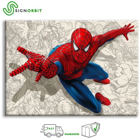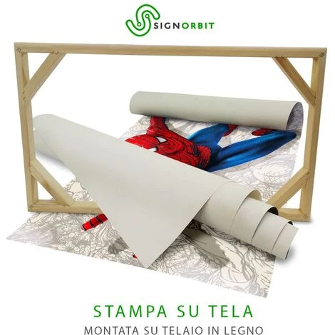 Quadro Stampa su tela modello Fumetto – Spiderman, montata su un telaio in legno rinforzato da 5 cm di spessore. Questo complemento d’arredo è disponibile in 4 misure selezionabili dal menù: 70×50 cm – 100×70 cm e 140×100 cm. Possiamo stampare qualsiasi foto su tela, per stampe personalizzate scrivici una mail o chiamaci.