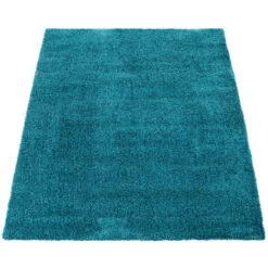 Paco Home Elegante Tappeto Shaggy Pelo Alto Tinta Unita Morbido Brillante In Turchese 160×230 Cm