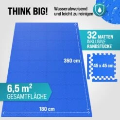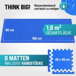 Deuba Tappetino In Gomma EVA 180x360x1cm 6,48m² Spessore 10mm Blu Fitness Ginnastica Piscina Tappeto