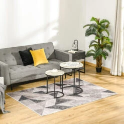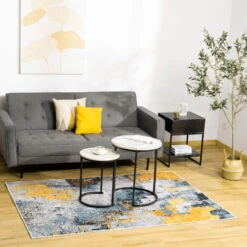 HOMCOM Tappeto Moderno Pelo Corto In Poliestere Per Interni, 200x140cm, Grigio Giallo Bianco