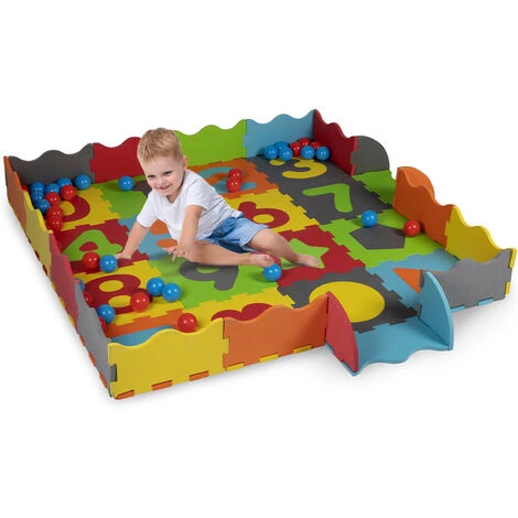 SPECIFICHE PRODOTTO:Marca: BAKAJITappetino grande: circa 146 x 146 centimetriCon 40 pallineDiametro palline circa 6 centimetriIn pratica custodiaBordo piatto o rialzato a piacereMateriale: gommapiumaPezzi del puzzle con numeri e forme