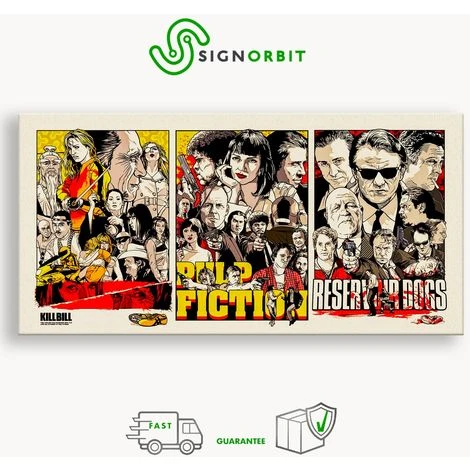 Quadro Stampa su tela modello tre locandine film Quentin Tarantino, montata su un telaio in legno rinforzato da 5 cm di spessore. Questo complemento d’arredo è disponibile in 3 misure selezionabili dal menù: 100×50 cm – 140×70 cm e 200×100 cm. Possiamo stampare qualsiasi foto su tela, per stampe personalizzate scrivici una mail o chiamaci.