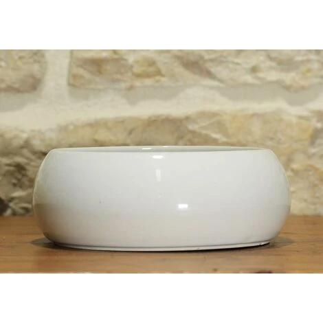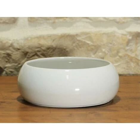 Vaso tondo in ceramica bianca per piante e bonsai diam. cm. 20 x h. 7