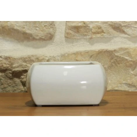 Vaso quadrato con lati bombati in ceramica bianca per piante e bonsai di cm. 15,5