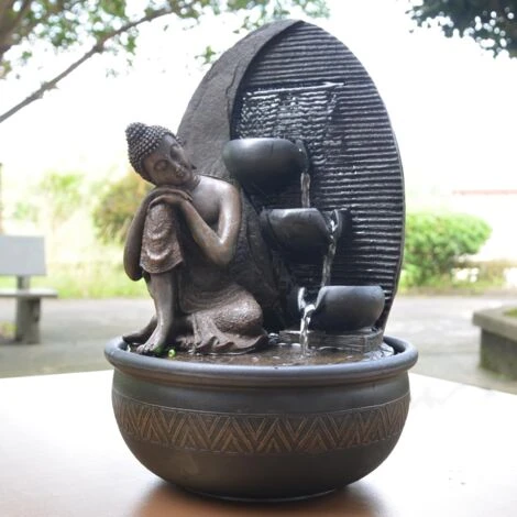 Fontana Buddha Grace La decorazione zen e armoniosa della fontana Buddha Grace vi farà vivere in un altro mondo. Quali sono i vantaggi della Fontana Buddha Grace? Con un’altezza di 40 cm, la fontana Grace è un bellissimo pezzo con ottime finiture. La statua Buddha è rimovibile, quindi può essere rimossa, sostituita o utilizzata separatamente con un altro elemento che personalizza la fontana. L’illuminazione a LED cambia colore dona un tocco di stile alla fontana creando un’atmosfera di notte nel vostro giardino. Con diversi flussi e movimenti dell’acqua, il relax sarà più semplice. Come funziona la fontana Buddha Grace? Basta inserire l’estremità della pompa nel tubo. Riempire il lavandino con acqua. Poi posizionare la pompa nell’acqua in modo che sia completamente immersa. Poi basta collegare la presa elettrica. È possibile regolare il flusso dell’acqua azionando il cursore situato sulla parte anteriore della pompa. Alcune parole su Zen’Aroma: Nato al sole, sulla costa dell’azore, Zen’Arôme è il frutto del matrimonio tra il know-how in materia di diffusore e la passione per l’aromaterapia. Progettiamo i nostri modelli ispirati alla natura, alla vita quotidiana, a ciò che ci circonda e sfruttiamo le nostre competenze per fare una semplice idea un vero oggetto. Creata più di 10 anni fa, Zen’Arôme propone oggi la più ampia scelta di diffusori distribuiti in diverse gamme. Ciò va dal semplice diffusore per capillarità al diffusore per nebulizzazione, passando per sistemi ad ultrasuoni, nebulizzazione e molto altro ancora. Ogni giorno possiamo ispirare a ciò che la natura porta al benessere di tutti. Contenuto della confezione