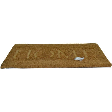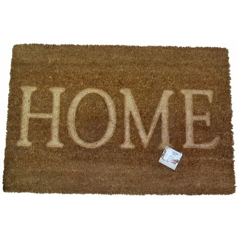Zerbino da esterno in cocco per ingresso porta o portone, con fondo in PVC antiscivolo. Colore marrone con scritta HOME. Dimensioni 40×60 cm.